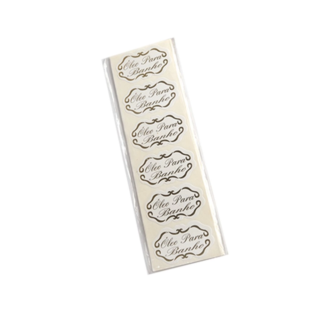 Etiqueta adesiva de papel couchê com impressão dourada. Pacote com 50 etiquetas.